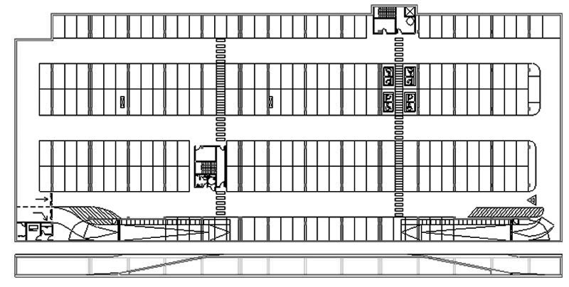 Es preveuen 125 places amb una alçada lliure de 3,20 m sota jàssera que haurà de permetre l'emmagatzematge de embarcacions i vehicles alts.