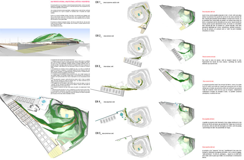 El concepte és articular el programa existent del tennis amb una sèrie d'eixos dinàmics d'activitats, que es retroben a la plana superior del turó, nou centre social del club.