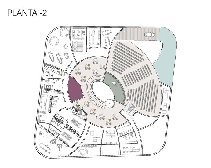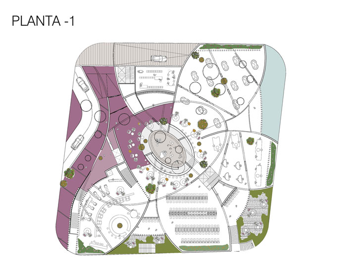 Es proposa un programa que associa aparcament a les plantes soterranis, galeria comercial i restauració a la planta baixa i la planta primera, un hotel boutique de 60 habitacions a les tres plantes superiors i finalment una gran oferta d'oci en la planta coberta, amb vistes panoràmiques.