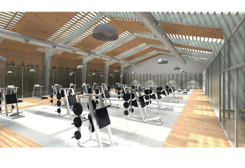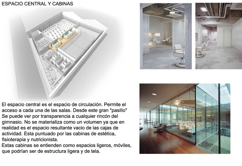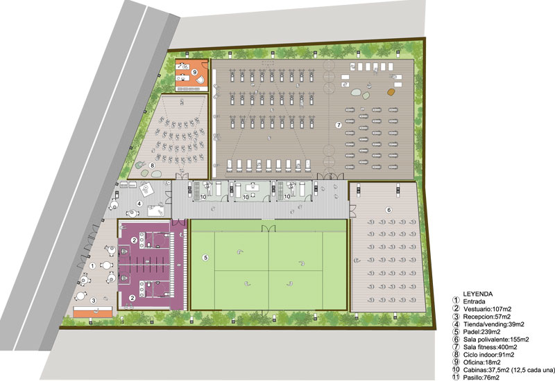 Un passeig central generós permet arribar a totes les sales: cicle, polivalent, fitness, pàdel i a les cabines.