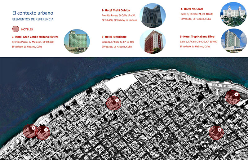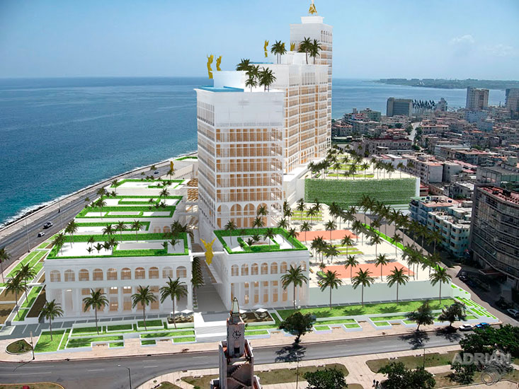 L'estudi previ tracta d'una proposta per a un centre hoteler i de convencions a l'Havana, Cuba.