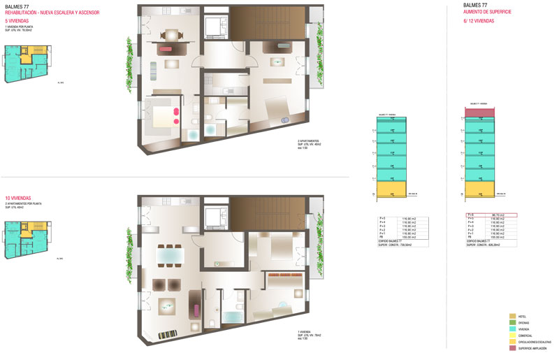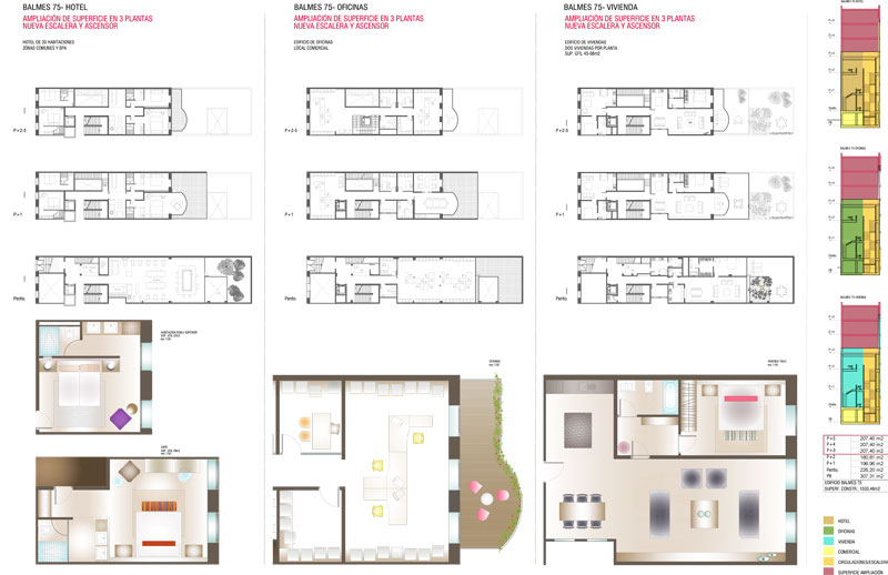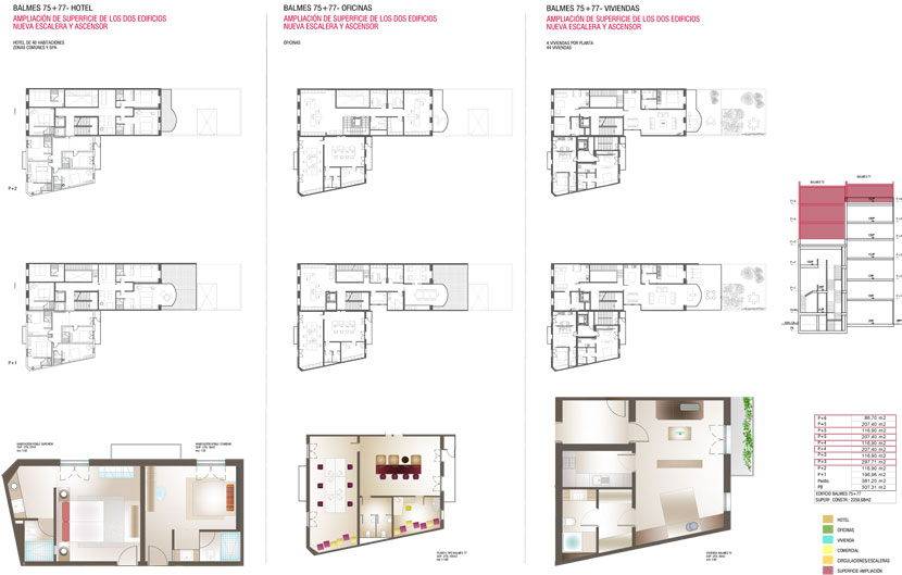 L'encàrrec consisteix en el disseny arquitectònic i rehabilitació de dos edificis d'oficines existents en carrer Balmes considerant tres diferents usos; superfície pel que l'edifici en conjunt l'hotel, d'oficines i habitatges.
