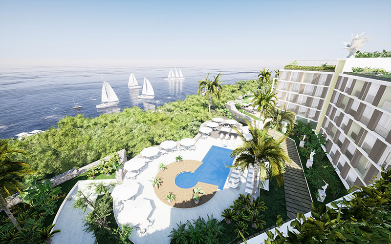 Dins d'aquest entorn s'emplaçarà aquest nou Hotel 5 estrelles de luxe de 100 habitacions, situat en la costa i amb precioses vistes a la mar.