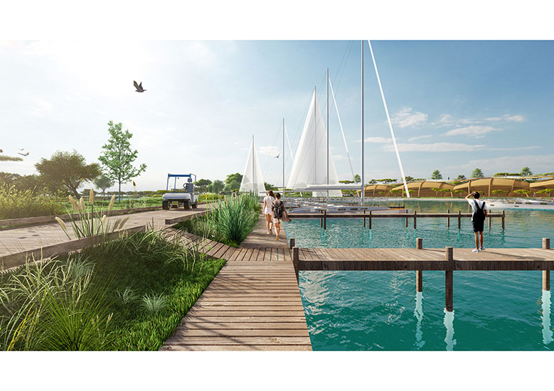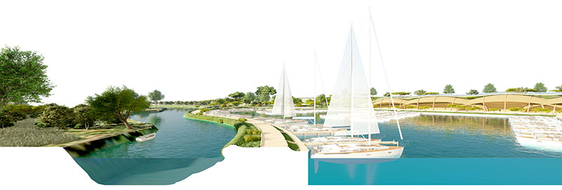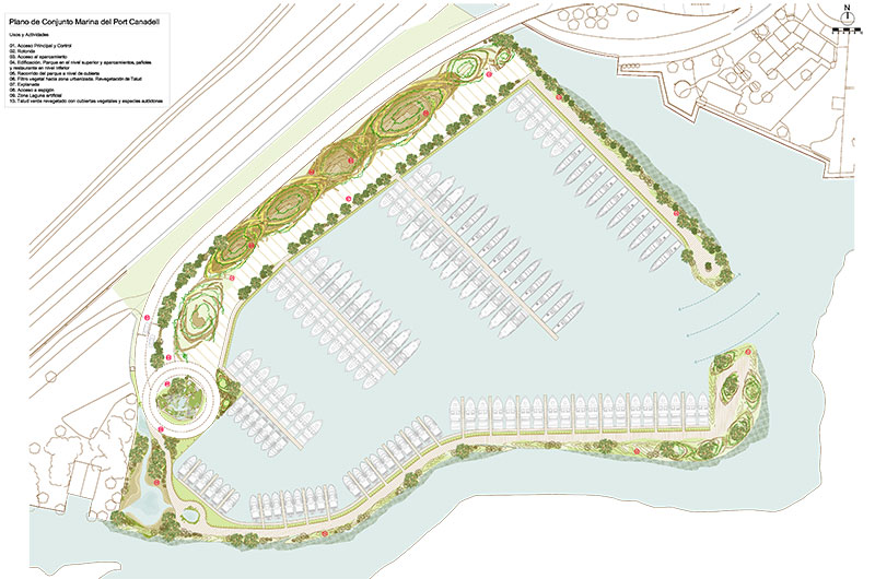 La proposta intenta explorar les possibilitats d'ús del terreny com una marina – parc de concepte ecològic, i la seva posada en valor, des d'una perspectiva múltiple, basada en: