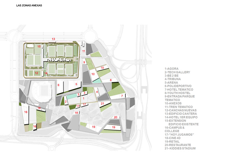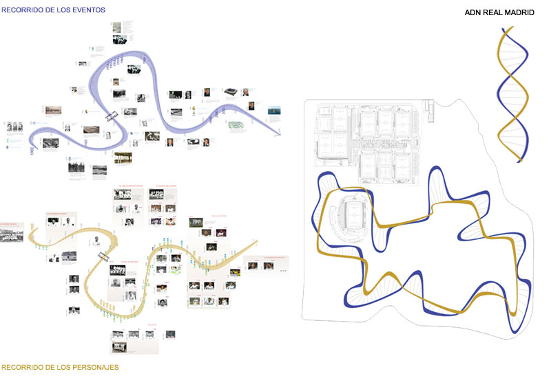 Després d'un treball exhaustiu sobre el concepte, s'ha definit un dens programa que s'ha organitzat sobre una idea forta capaç d'estructurar l'àrea sencera: dos recorreguts lúdics, un sobre els personatges i l'altre sobre els esdeveniments importants de la història del Reial Madrid, com en un ADN, s'entrellacen movent-se en la mateixa direcció i generen espais.