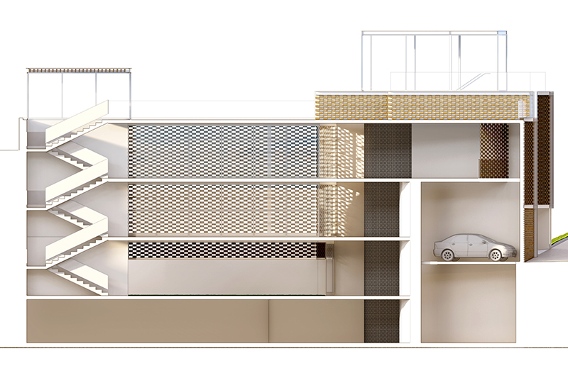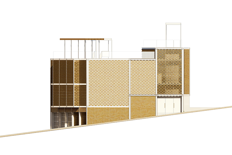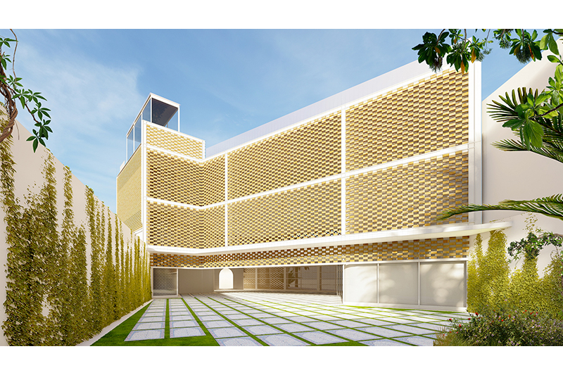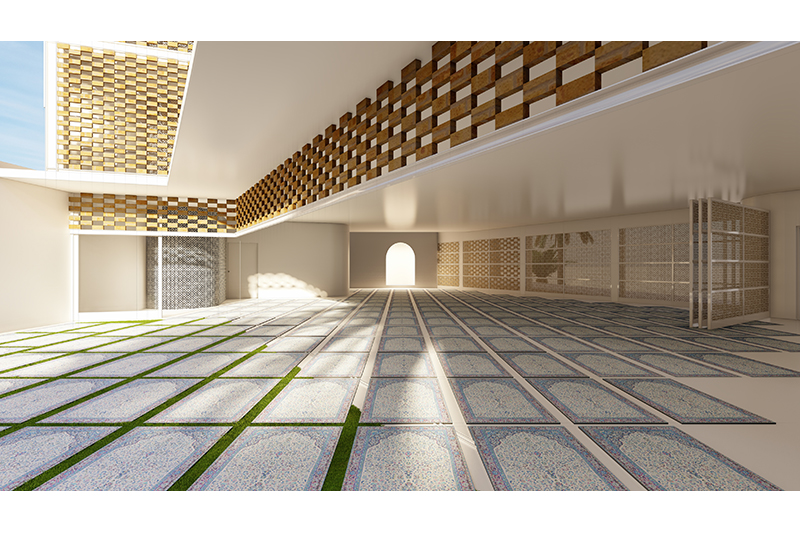 El concepte global de l'edifici és funcional (un conjunt de sales d'oració, espais diàfans, interconnectats, triple altura, entrada de llum natural tamisada, espais compartimentables) i volumètric (una caixa embolicada amb gelosia ceràmica, mirant cap a la plaça a través del filtre visual i climàtic de la façana).