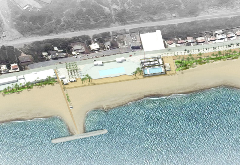 El projecte ocupa un lloc en primera línia de mar, a la zona de la platja a costat d'on avui dia es troba una estructura amb serveis i una piscina a l'aire lliure.