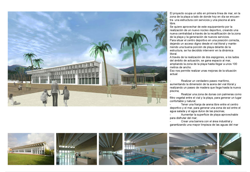Es vol aprofitar d'aquest equipament per la realització d'un nou nucli esportiu, creant una nova centralitat a través de la requalificació de la zona de la platja i la generació de nous serveis.