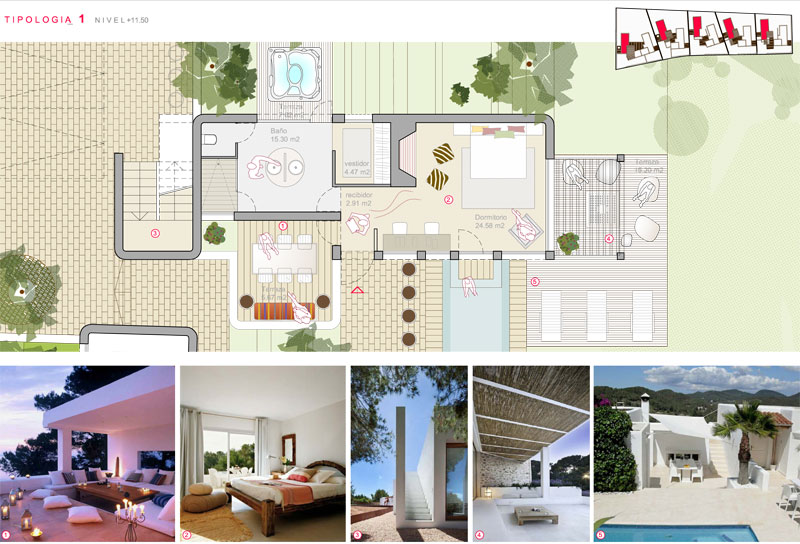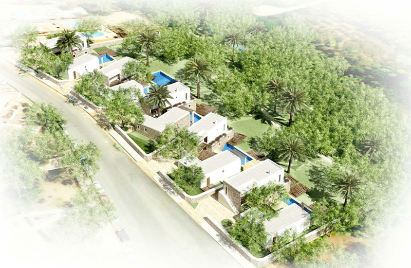 El projecte consisteix en el disseny de 15 suites i villes residencials i les àrees exteriors del complex de 3.170m2 com a extensió d'un hotel existent de 5 estels.