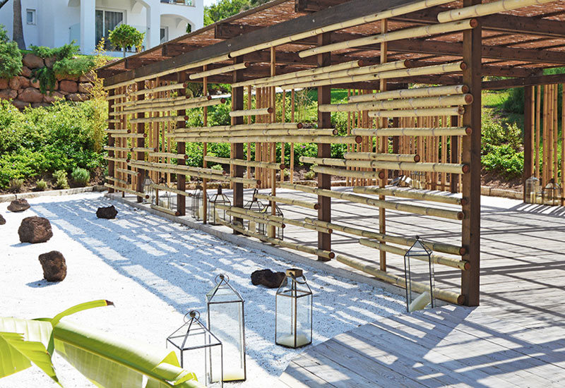 S'introdueix una vegetació ad hoc amb l'aire zen que es vol aconseguir; bambús i espècies autòctones de colors suaus i relaxants.