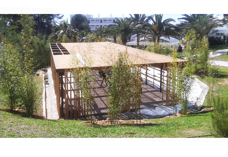Es proposa una superfície rectangular de fusta on aniran situades els matalassets de Ioga. Sobre aquesta es disposa una pèrgola del mateix material que donarà ombra i confort a aquest espai.