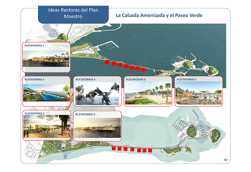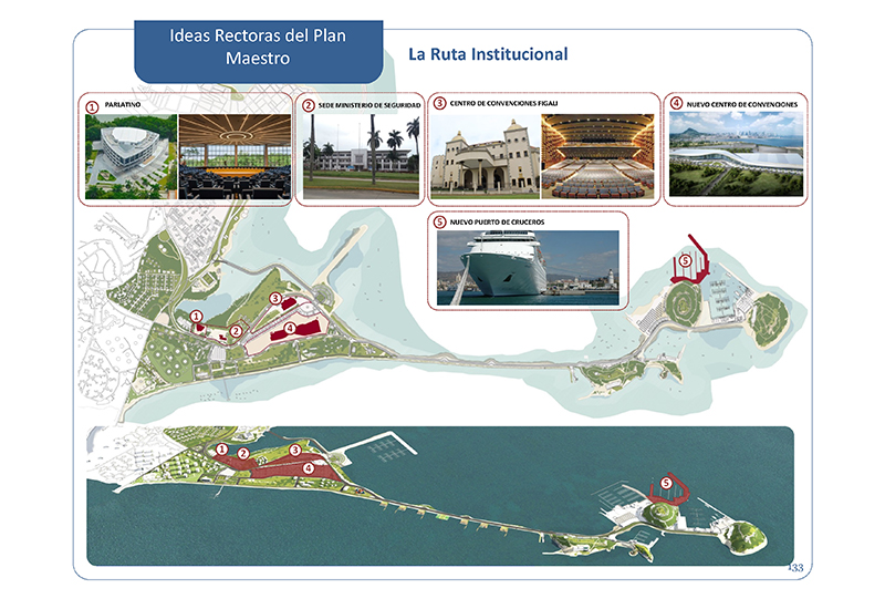 6. La ruta institucional, destacant el nou Centre de Convencions actualment en construcció i el nou Port de Creuers com especial punt d'arribada de turistes a Amador des del mar.