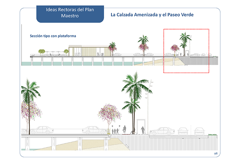 3. La posada en valor i millora de l'actual Calzada, dotant-la d'un seguit de plataformes amb nous usos i espais verds que emfatitzen l'atractiu de la seva ubicació i particular morfologia.