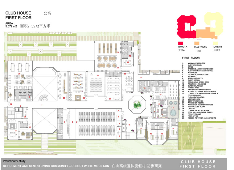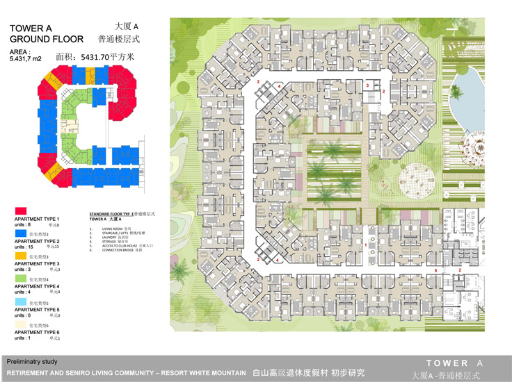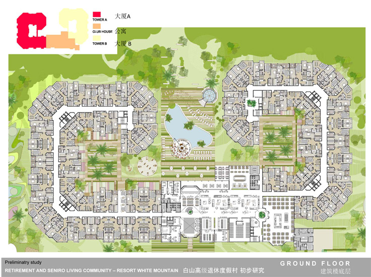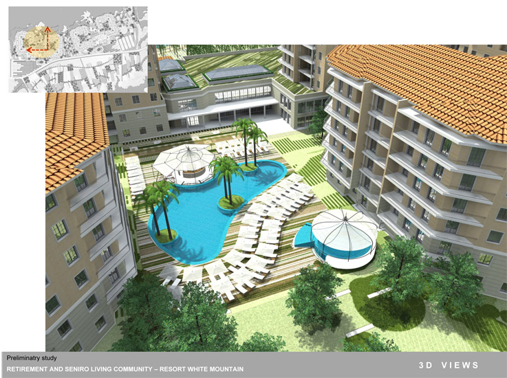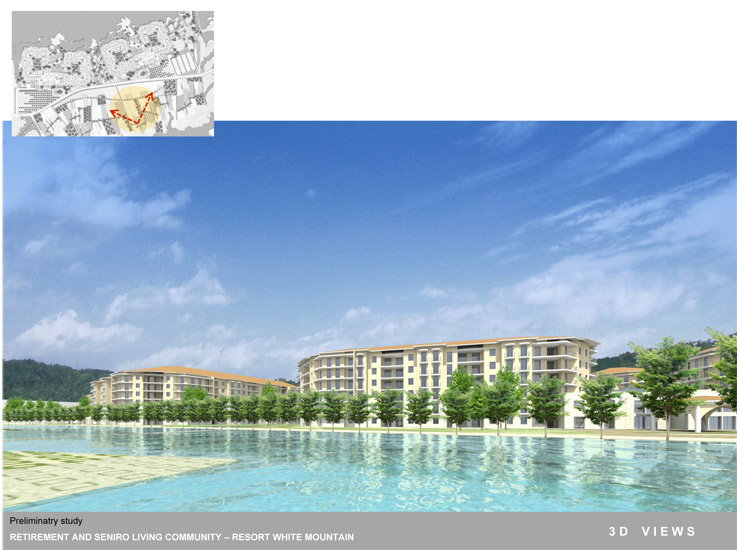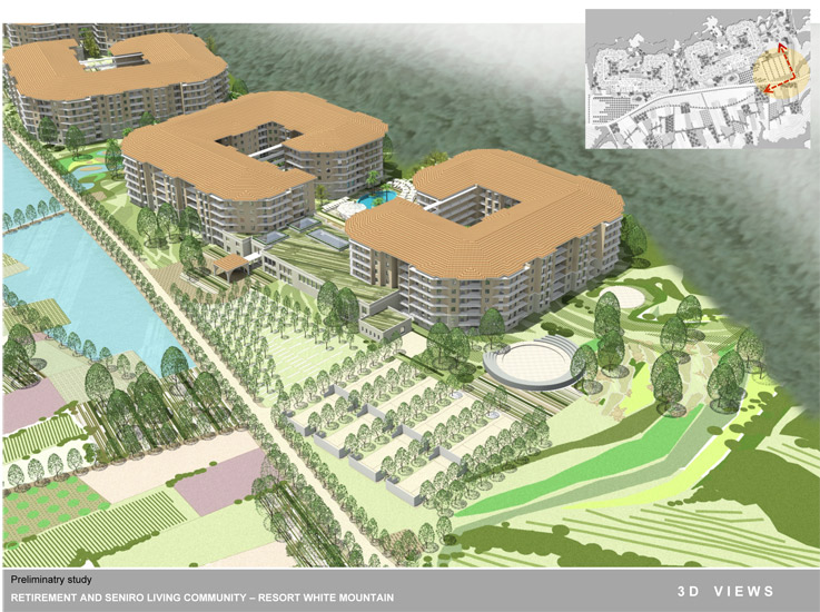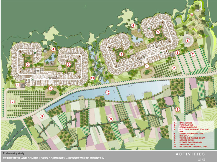 La proposta consisteix en l'estudi previ d'un resort geriàtric que es compon per departaments especialment dissenyats per a gent gran, un club house amb zona comercial i serveis comuns i zones amb activitats on s'inclouen zones d'esports i un extens parc de flors dins del complex turístic White Mountain resort a Baishan, Xina.