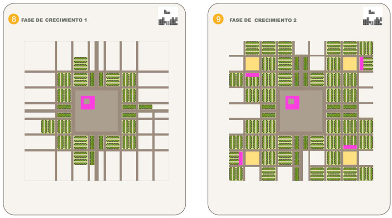 En la segona fase vam proposar el sistema per a Haití. Vam estudiar el lloc per a poder adaptar el sistema general i vam triar les topologies més adequades (de 60m2 i 40 m2). Vam proposar usos particulars en les places principals i secundaries segons les costums locals i vam programar el creixement en 4 fases.