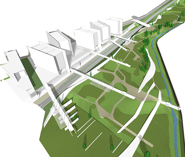 La proposta consisteix en el disseny d'un conjunt de 6 blocs plurifamiliars amb un total de 105 habitatges o apartaments per als empleats del complex.