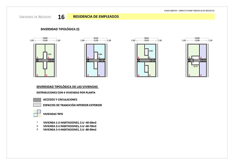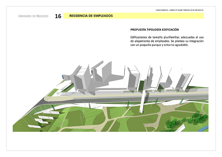 La Residència d'Empleats del Ecoluxury Resort correspon a la Unitat de Negoci 16 del MasterPla Cabo Santos.