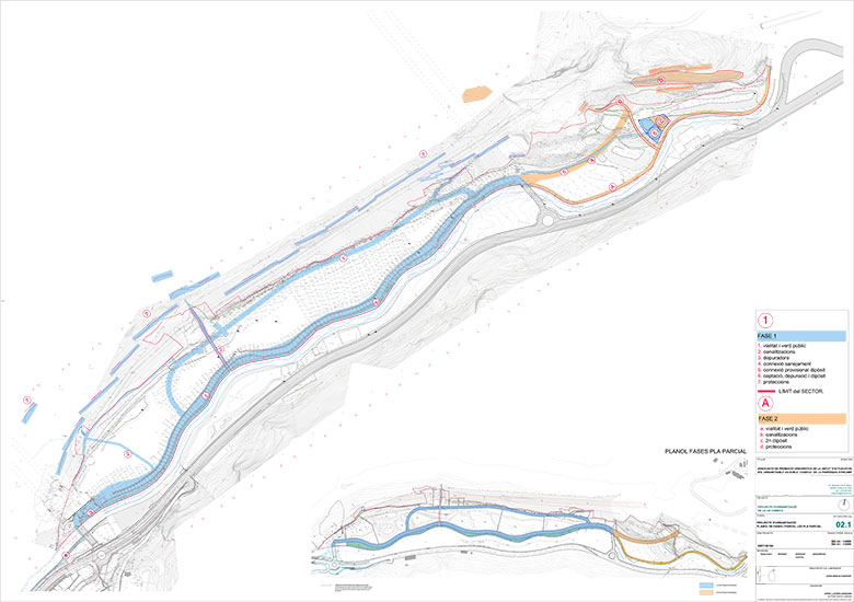 The first phase corresponds to the development of the main road from the tunnel two Valires up to the connection with the C.G.2. This first phase allows the correct connection with existing roads and the necessary connections to existing facilities.