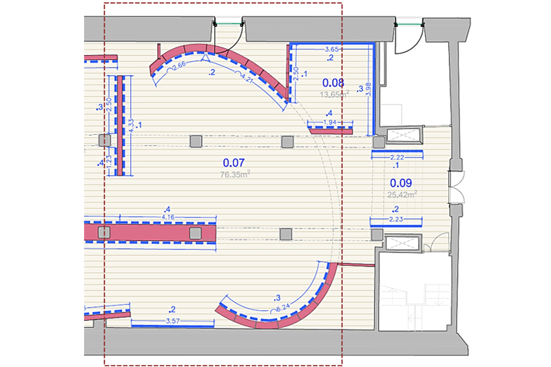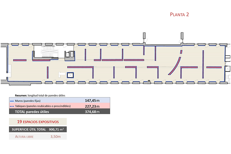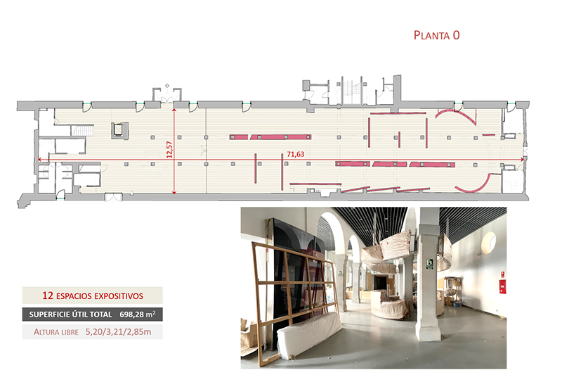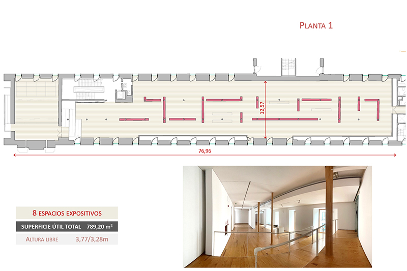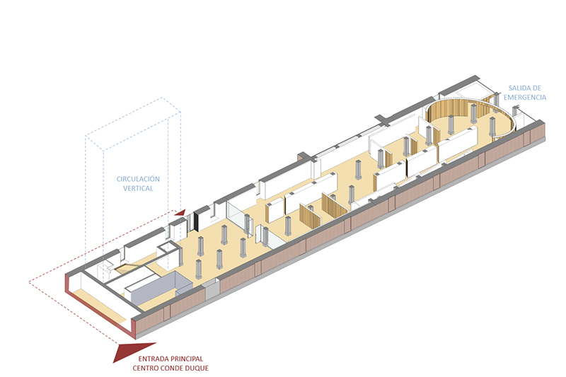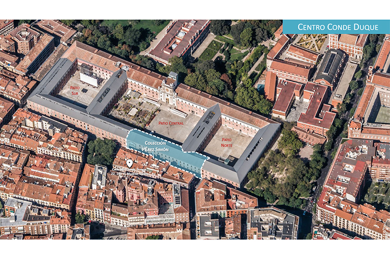 The spaces proposed to house the Pérez Simon permanent art collection are located in the northern half of the building, on floors 0-2, on the east façade (Conde Duque Street) and add up to a useful area of approximately 3,800sqm, according to the Master Plan.