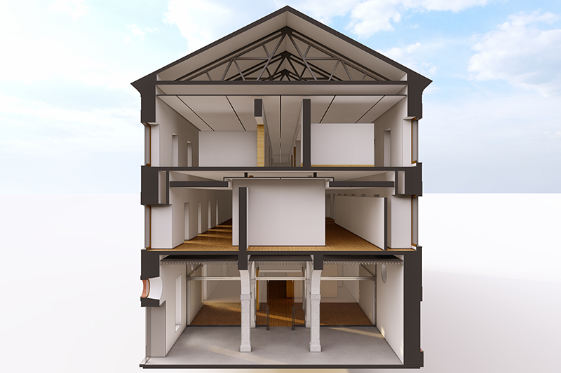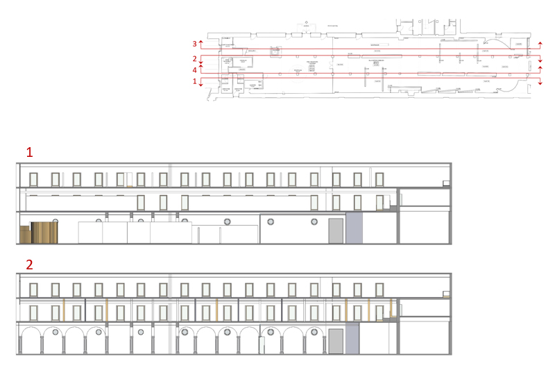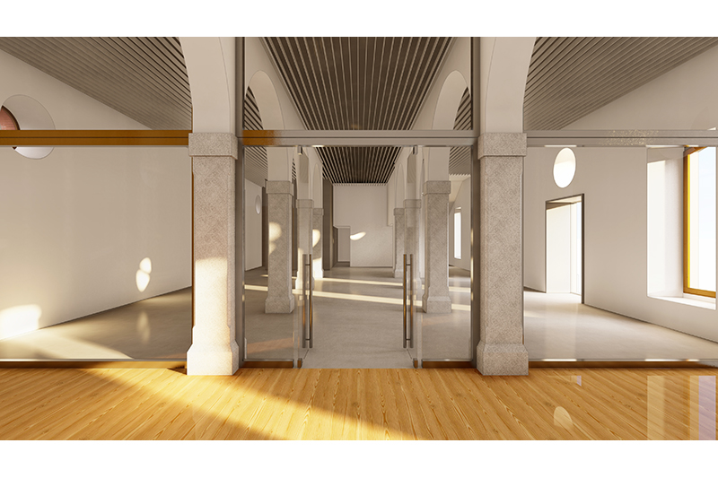 The preliminary study had the mission of identifying the elements of value, to preserve and the possibilities of adapting each space to the new museum project. For this reason, we built a 3D model of the building, as a basis for studying the implementation of the new art collection.