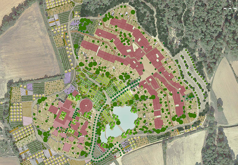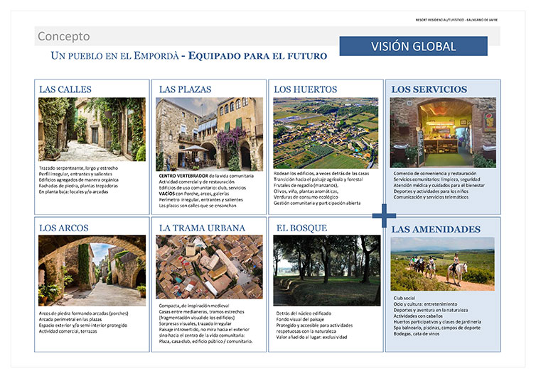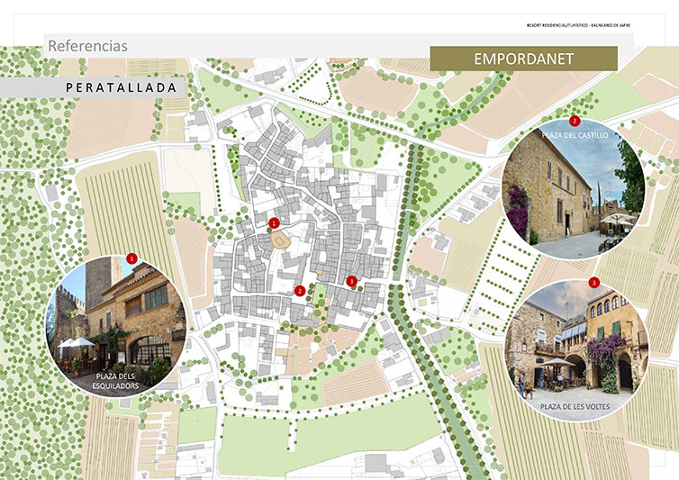 El conjunto será un pueblo con tipologías arquitectónicas inspiradas en núcleos urbanos antiguos del Empordanet, con materiales y las técnicas de construcción tradicionales y con criterios de ecodiseño.