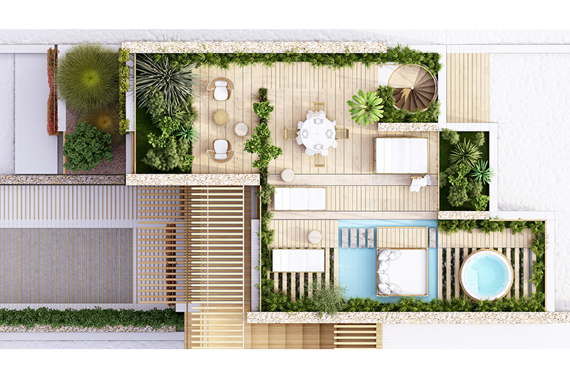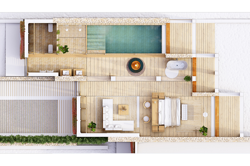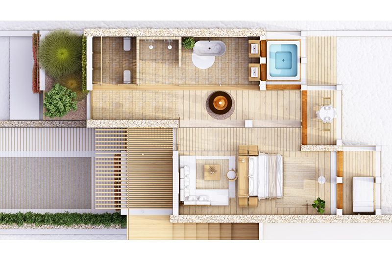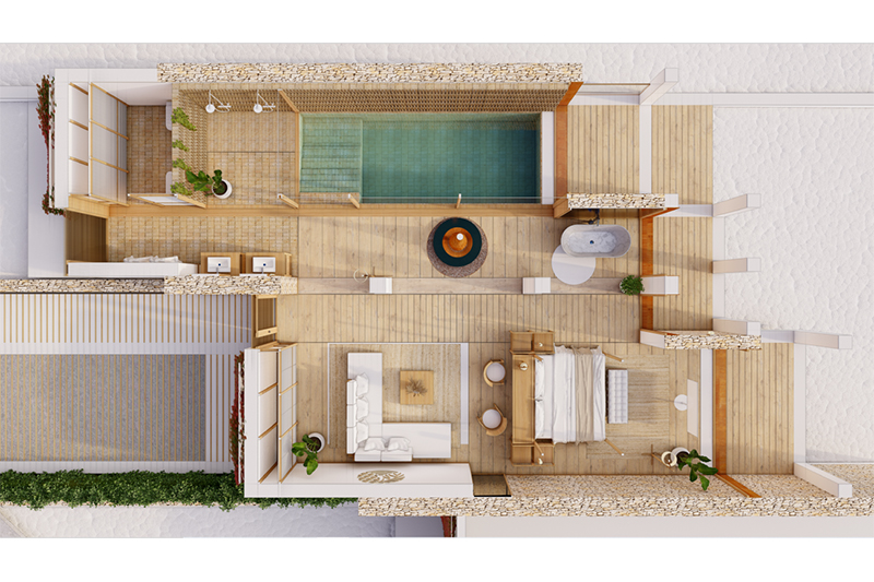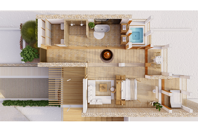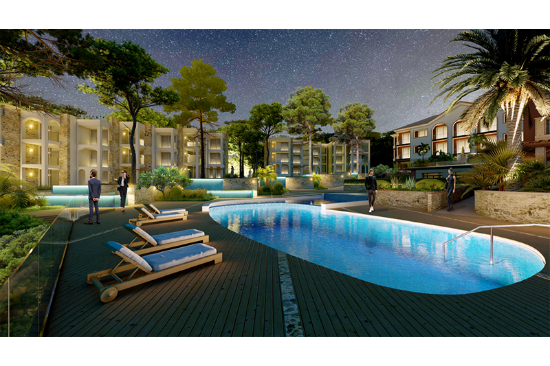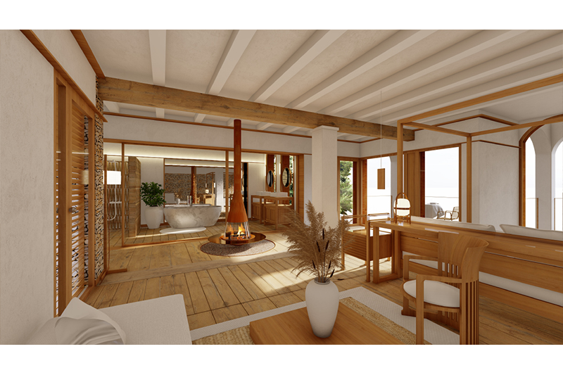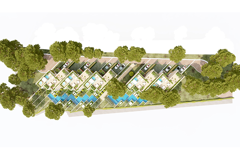 El proyecto consiste en la ampliación del hotel Cala del Pi en 15 habitaciones tipo suite, con terrazas y pequeñas piscinas de uso privado.
